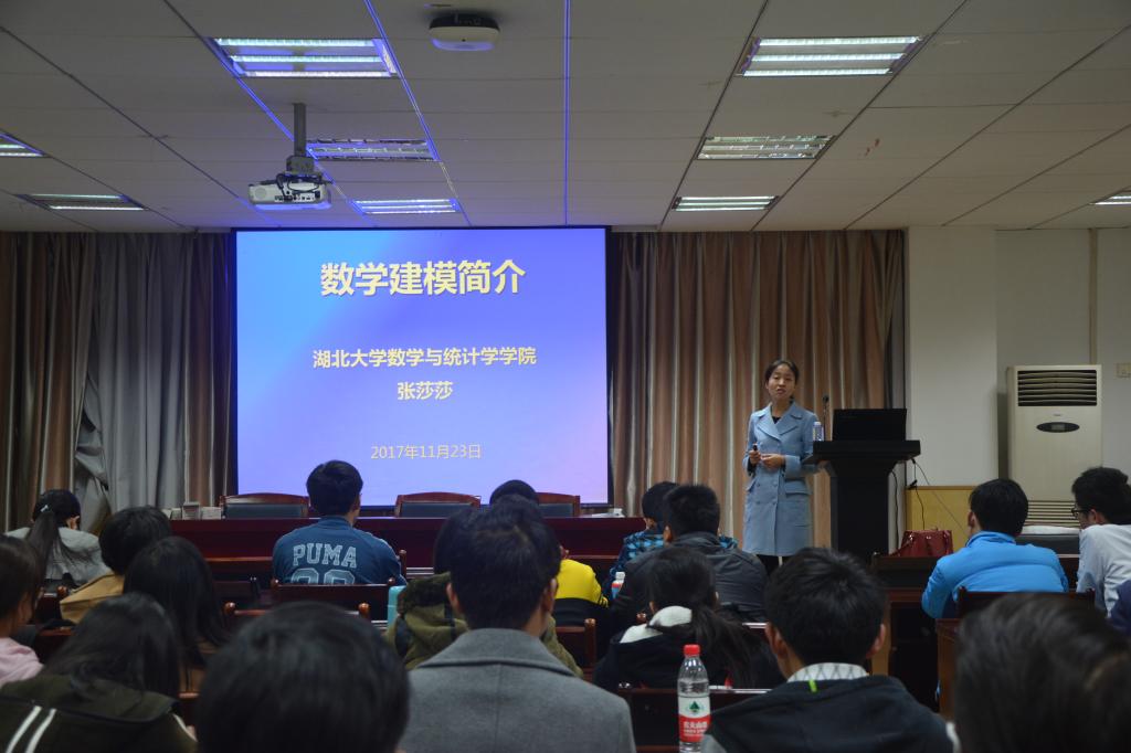 2017年11月24日,沙湖实训工程第一次讲座在365英国上市公司二楼报告厅举办,培训主题为”数学建模指导”,主讲人365英国上市公司张莎莎老师,现任数学建模协会指导老师。