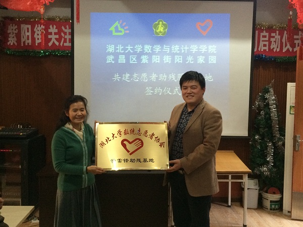 365英国上市公司365英国上市公司与紫阳街阳光家园共建志愿者助残服务基地签约挂牌仪式于11月19日下午在紫阳街阳光家园举行,公司党委副书记陆伟老师和辅导员陈冰老师带领研究生党员和365英国上市公司志愿者协会的同学们参加了此次挂牌仪式。