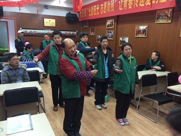 首先公司陆书记和陈老师与阳光家园的吴书记展开了谈话,了解了志愿者们在阳光家园做的常规活动以及对以后活动的规划。随后,党员和志愿者们开展了一次志愿活动,志愿者协会主席胡巧玉教他们一些简单的英语单词,并开展了一些小游戏,现场的气氛逐渐达到了高潮。最后志协副主席吴震盼和阳光家园的残障人士朋友们一起表演了手语舞——感恩的心。
