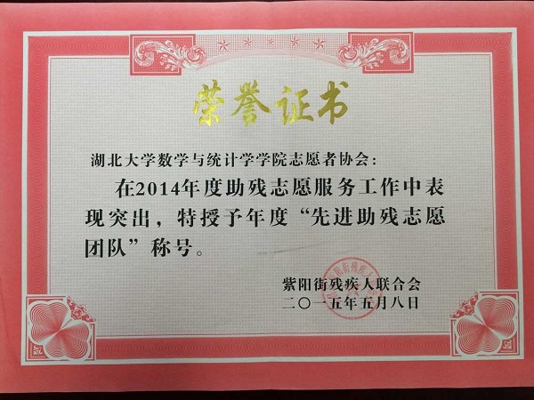 5月8日,公司青年志愿者协会应邀参加紫阳街阳光家园助残志愿者表彰大会。紫阳街残联主席对前期坚持为残障人士无私奉献的优秀团队和个人进行了表彰,并颁发荣誉证书。公司青年志愿者协会获得年度“先进助残志愿团队”荣誉称号,四名志愿者获优秀志愿者的称号。