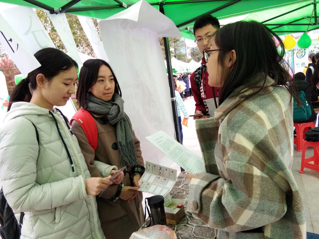 活动当天,志愿者们早早的完成了会场布置。数统院设置服务展示区:由一位项目主讲人负责,主要使同学们了解数统院暖阳志愿服务队和小书童支教团;游戏体验区:由两名员工负责,模拟为残障人士及留守儿童授课,还有公益问答和汉诺塔等游戏。数统院志愿者们配合前来参加活动的同学完成各环节,继承了雷锋精神,宣传了数统院志愿服务活动。