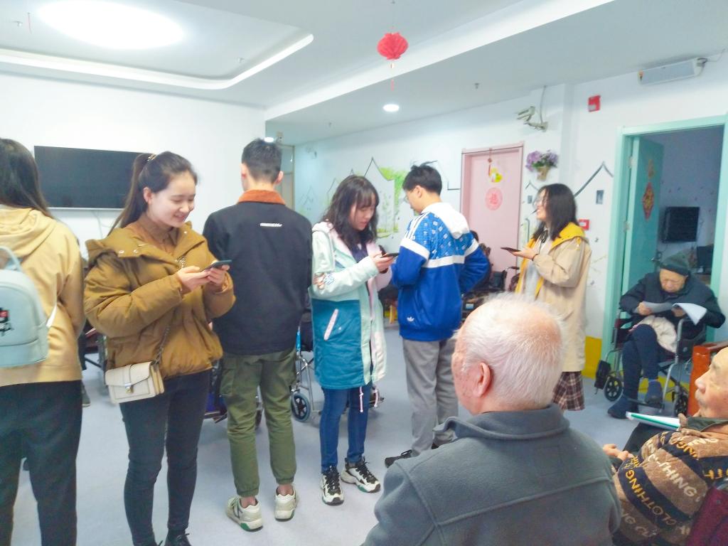 活动第一环节,在养老院经理的带领下,志愿队的成员和老人们一起做手指操并正式开始志愿活动:歌唱《打靶归来》、做手语《没有什么不同》。紧接着志愿者们演唱《对花》《天仙配》等经典戏曲。第二环节,三名志愿者向服务对象讲述毛主席的著名事迹,养老院的老人们听得非常认真,大家互相交流学习。
