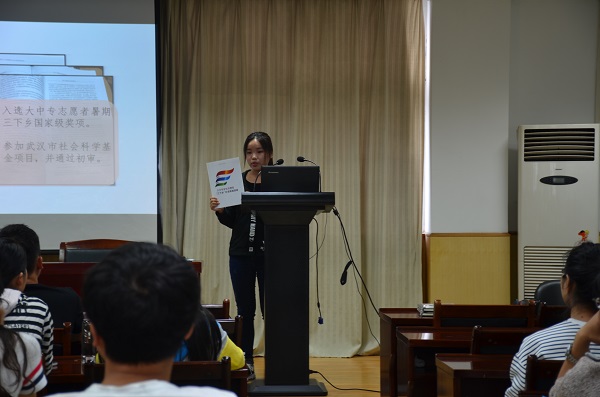 培训中,许烛景同学分别从如何确定暑期实践的主题、如何进行实践的具体安排以及申请书的撰写三个方面向大家分享了自己的经验,她说:“好的实践的主题不是短时间内可以想出来的,它来源于生活,大家平时要多留意发生在身边的事情。同时,实践过程中的安排应尽量细节化,要考虑到实践中可能会出现的各种问题。撰写申请书是实践的重要组成部分,它综合体现了以上两个方面。”参加本次培训的14级信科专业的范晓媛说:“今天学到了很多关于社会实践的知识,无论是选题还是到具体的实施,都要有一定的技巧并且也要付出努力,收获和付出是成正比的!”