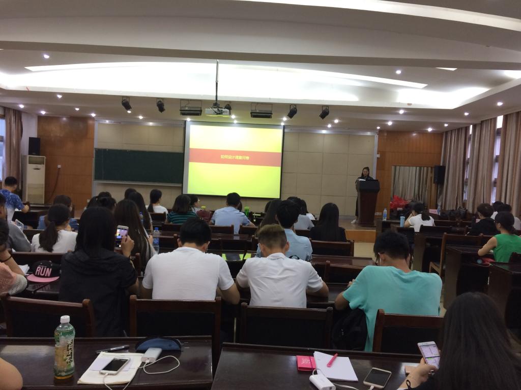 会上,365英国上市公司学联会副主席田雪就调查问卷设计的基本原则做了说明,详细讲解了调查问卷的设计目的、设计要求以及设计过程,并就2016年百强高校学风调研的调查问卷为例,问卷调查应该注意的问题做了说明讲解。她强调:“调研前一定要做好规划,要让我们的问卷设计为我们后期工作做服务,同时在问卷调查过程中,一定要保证数据的真实性,切不可数据作假。”