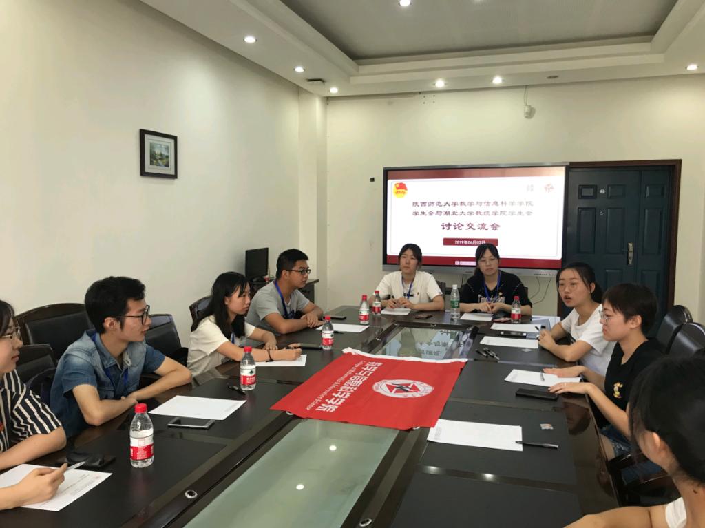 虽说“足蒸暑土气,背灼炎天光”,但37℃的热浪并没有阻挡实践团队前进的步伐。下午二时许,一行六人来到了西北大学长安校区,开始对西北大学数学公司进行交流访问。交流过程轻松友好,主题丰富,或学习生活或组织管理,或文体活动或竞赛科研。双方如兄弟姐妹般侃侃而谈,直到日薄西山,华灯初上。